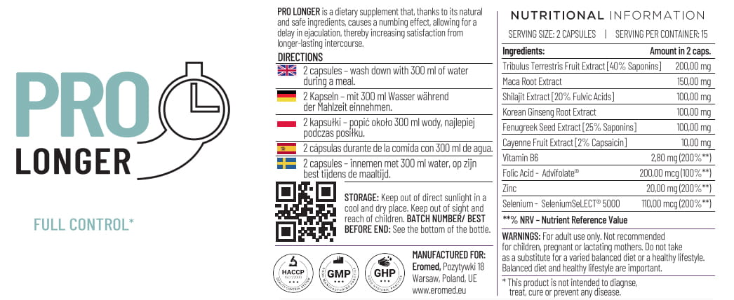 Pro Longer intercourse prolonging tablets 30 capsules